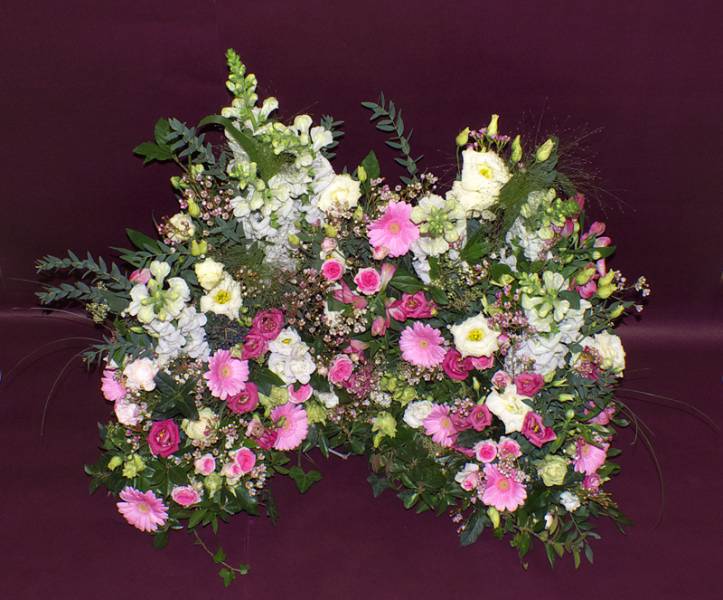 En cas d'obsèques de l'un de vos proche, son équipe se charge de vous livrer des dessus de cercueil, gerbes ou encore coussins funéraires afin que vous puissiez lui rendre un dernier hommage.
